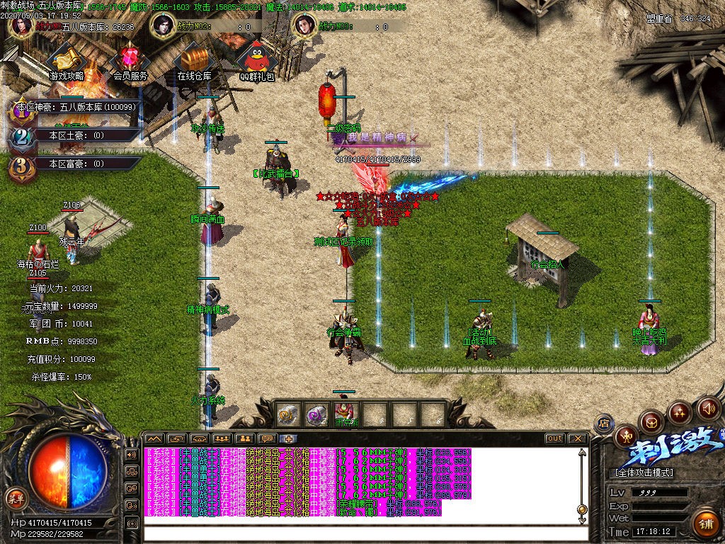 上线捐献 58米 顶赞礼包必不可少! 充值30米米点游戏内=150米点(充值比例1:5)去捐献,给永久属性,合区后关闭!