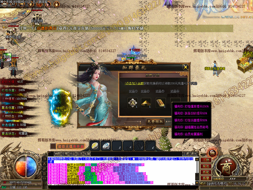 本服免费顶赞,唯一礼包.上线就送200充值!(可开启自动捡物精灵和超级大爆功能!),无任何充值地图 沙城捐献3米 将记录到沙巴克奖池(万米沙奖等你来抢!)