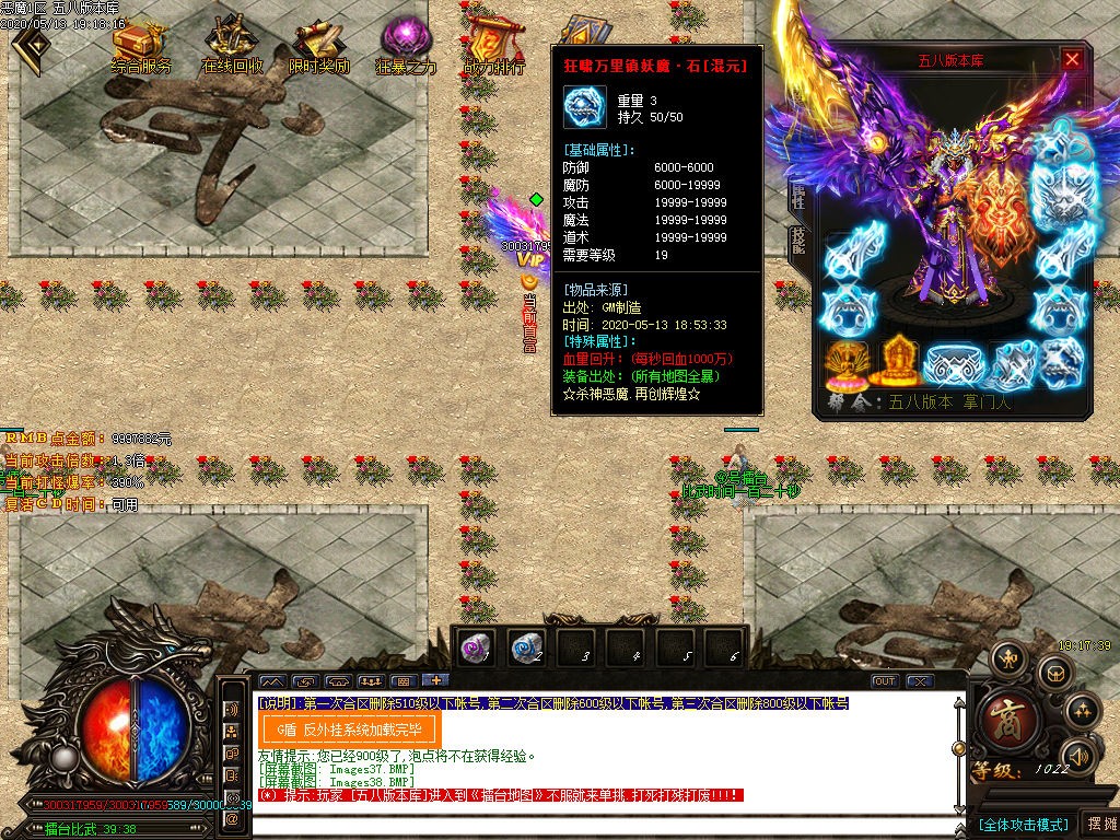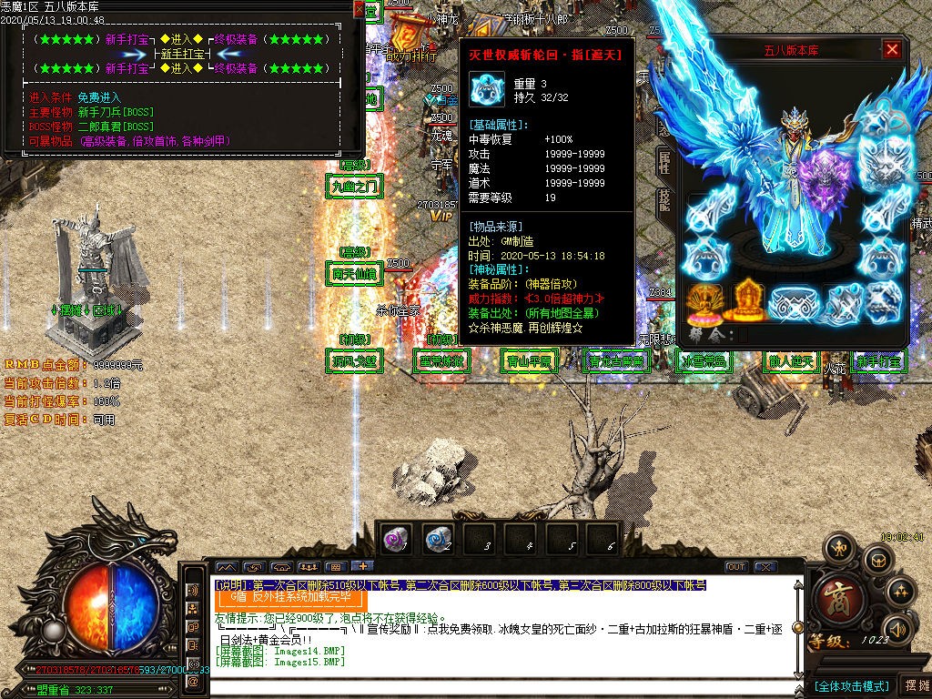 <神力属性:血量加8000万>+<攻速提升5%+<杀怪爆率+100%<>