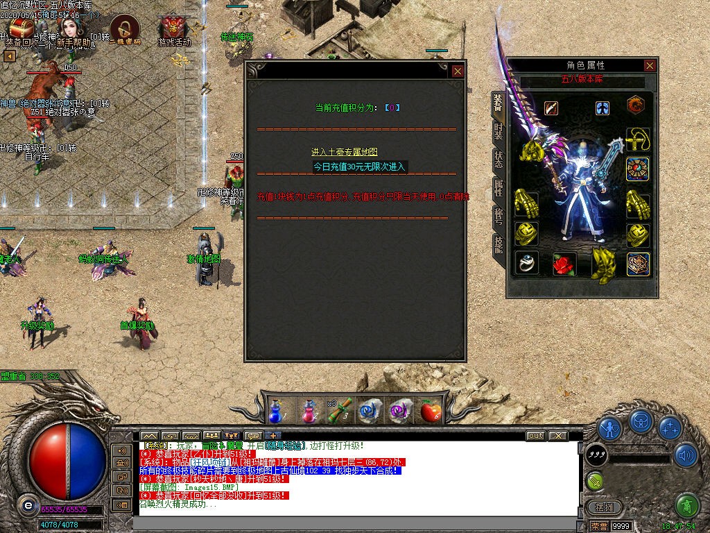 土豪充值个会员,进入会员地图转生材料半小时即可4转,先去地魔老人学习技能,战士,法师,道士都有