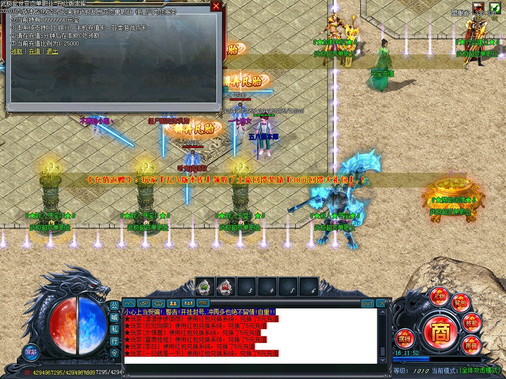 【版本特色】:装备全部靠打,元宝秒回收,与激情的天堂。