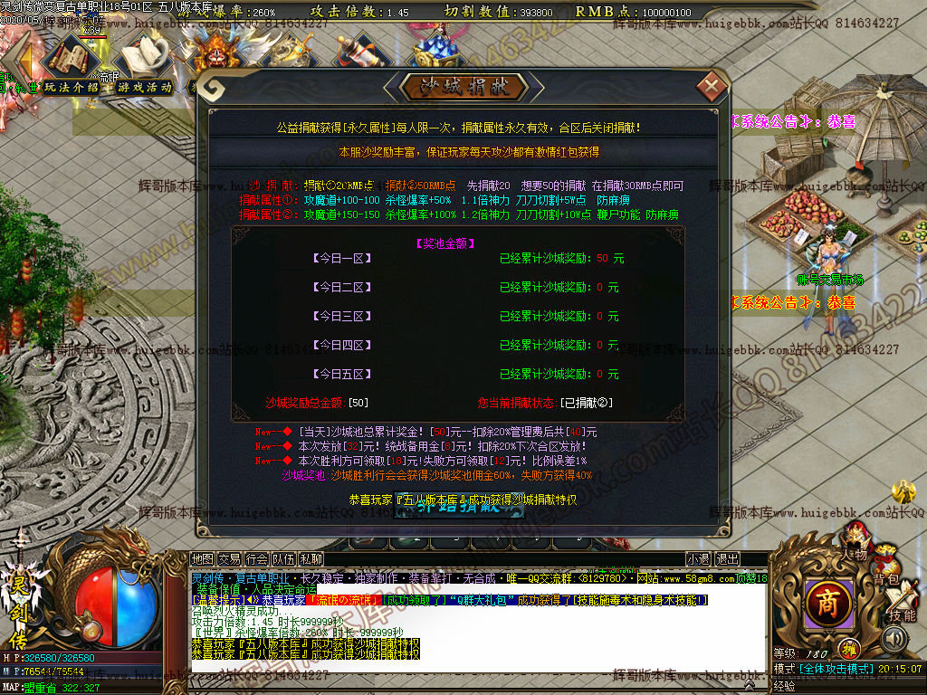 充值30米,20米沙捐献+10元宝狂暴。充值18米花呗购买赞助礼包:获得超高属性