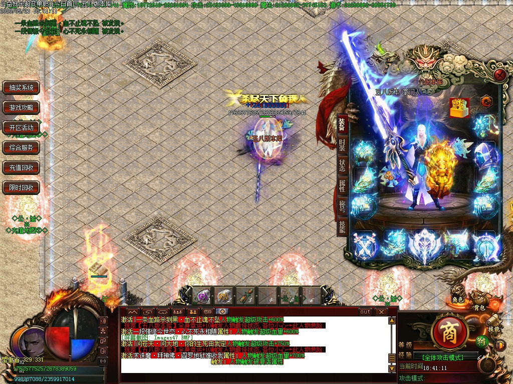 <介绍:充值玩家50米可以永久在线回收永不掉落,打元宝一小时最少有20w>