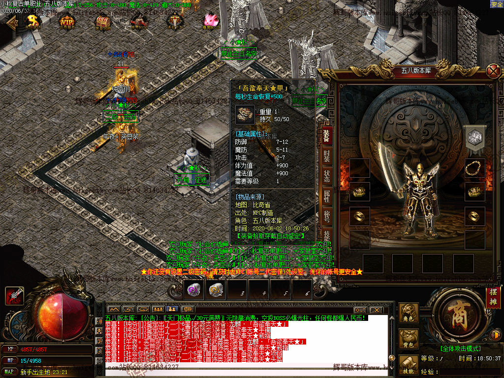 4,<增加全服boss量翻8倍,增加四神兽boss,更容易出终极武器 <>