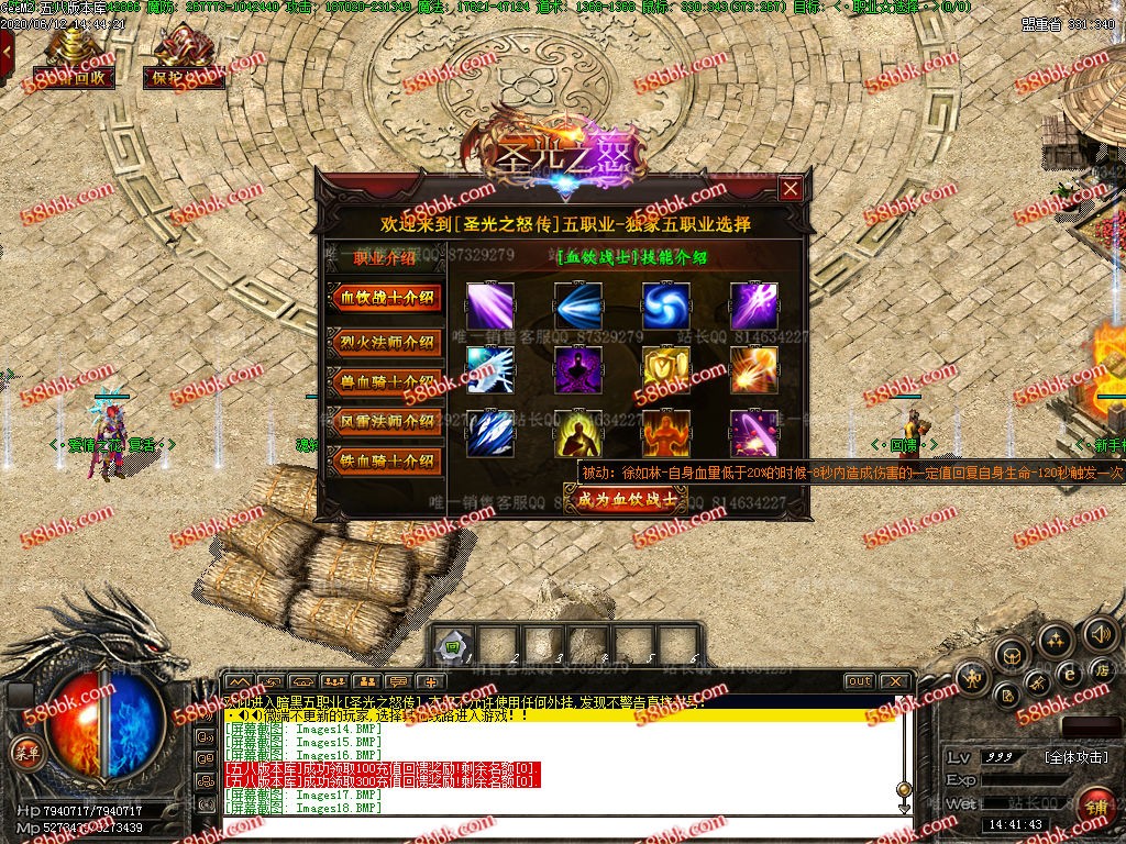 【职业】五职业玩家上线,可以晋升为血饮战士-烈火法师-兽血骑士-风雷法师-铁血骑士!