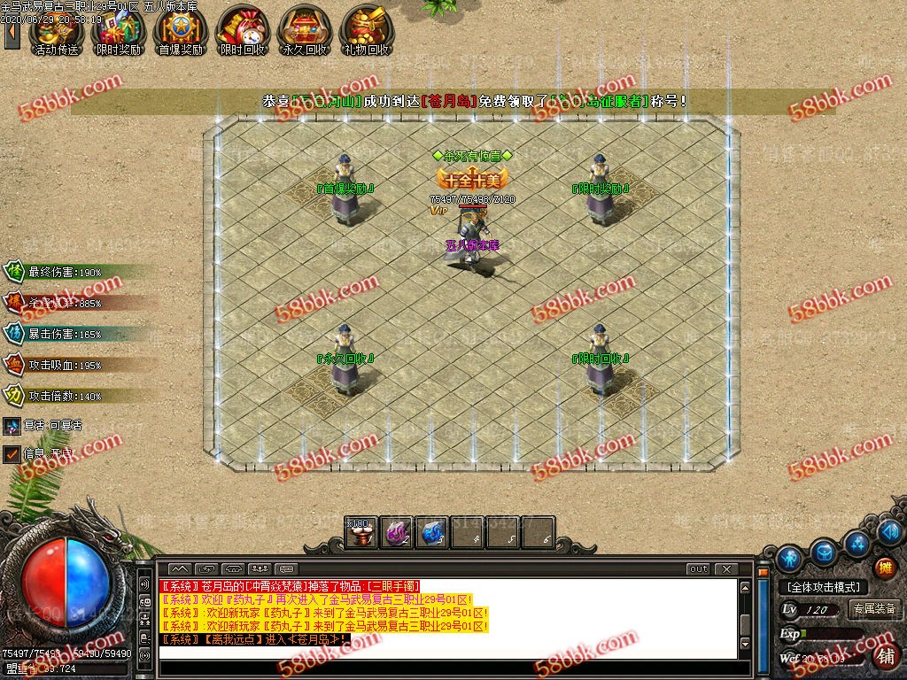 爆率介绍:苍月岛(爆魂环)封魔谷(爆技能)白日门(爆特戒)魔龙城(爆生肖)