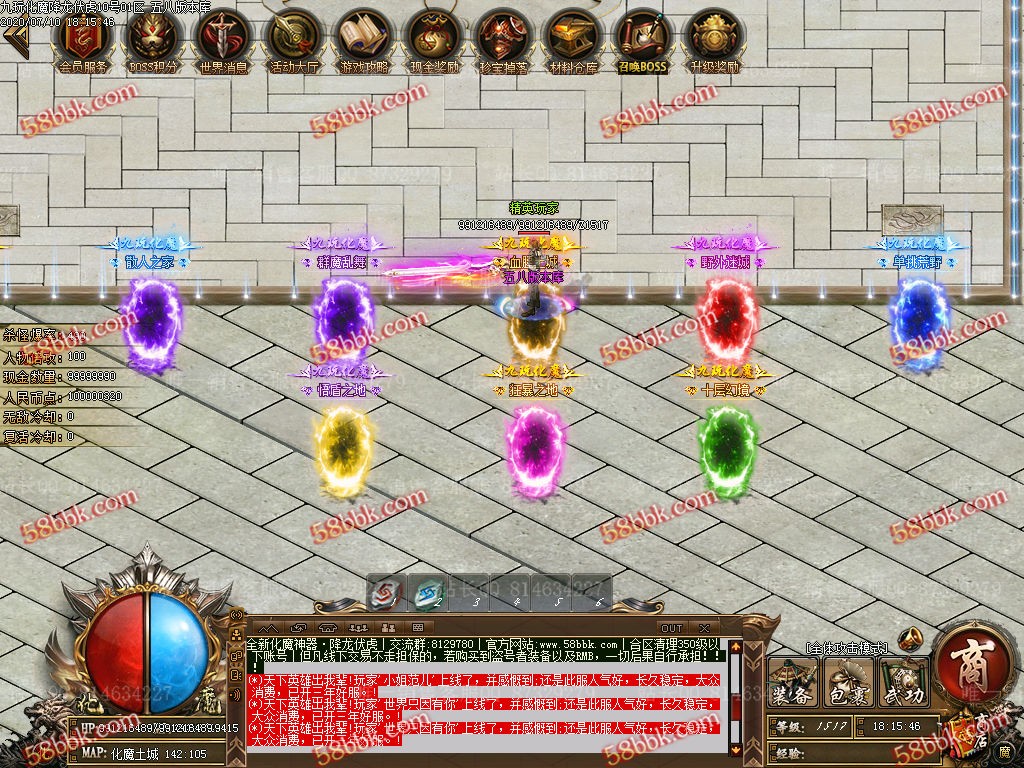 【群魔乱舞】:进地图每秒扣元宝10000,此地图boss也多,适合散人去搏一搏!