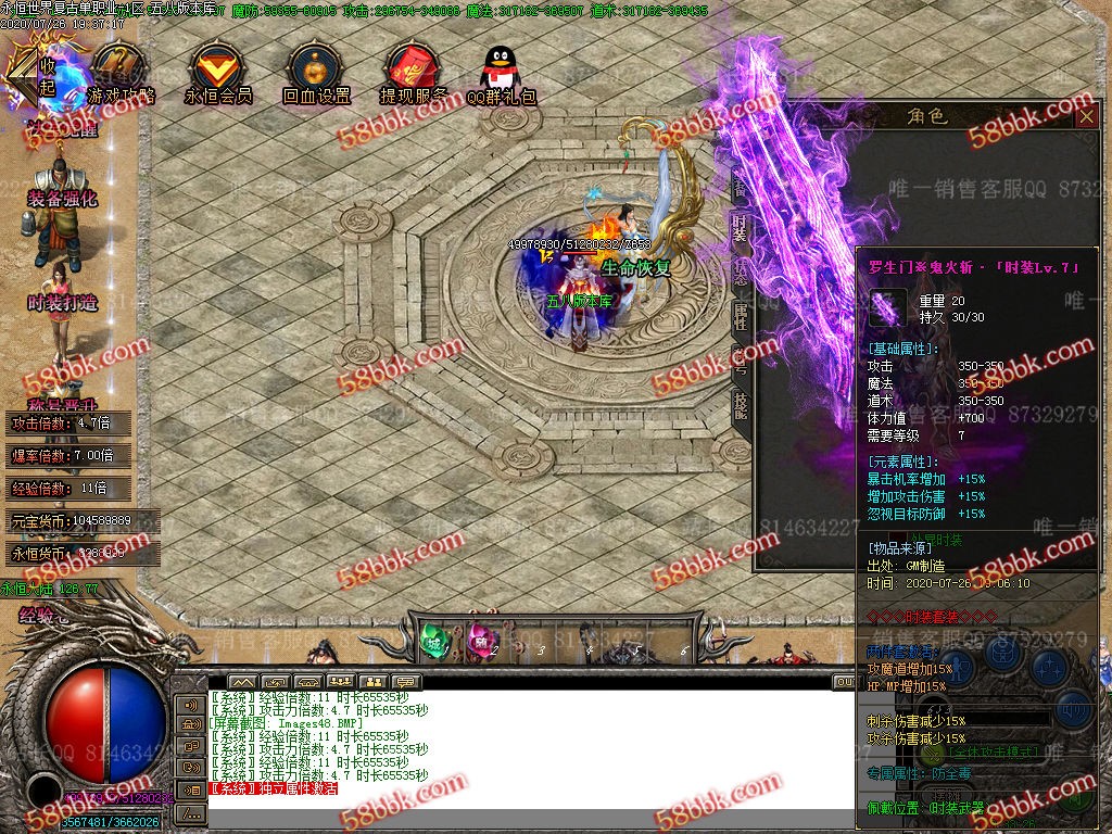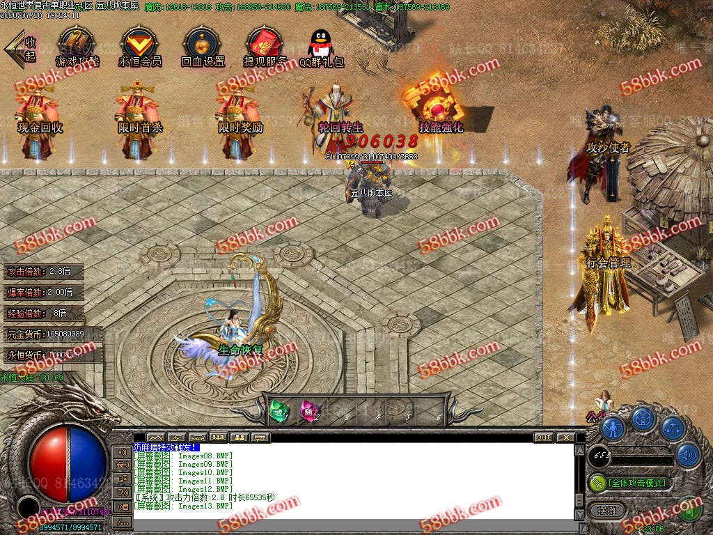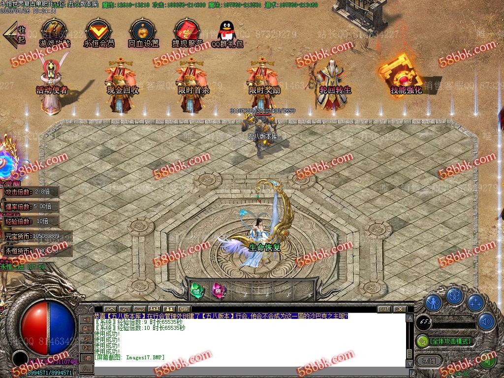 【充值比例】网银充值1∶1000永恒币,金币1∶10。本服不卖元宝。装备靠打。
