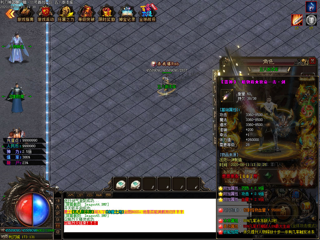 充值100米水晶购买游戏唯一顶赞(赠送10%鞭尸),获得刀刀切割怪80万,回收元宝+100%