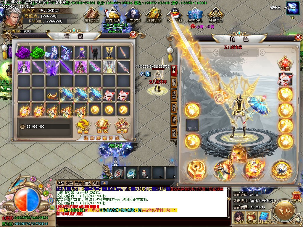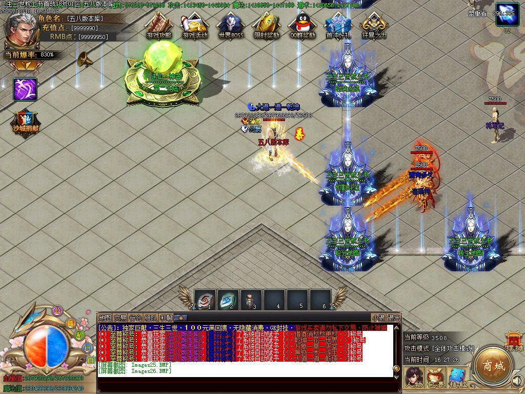 <3.本服爆率全开,所有材料装备都能爆出,一切看脸,建议玩家先升等级和转生.>
