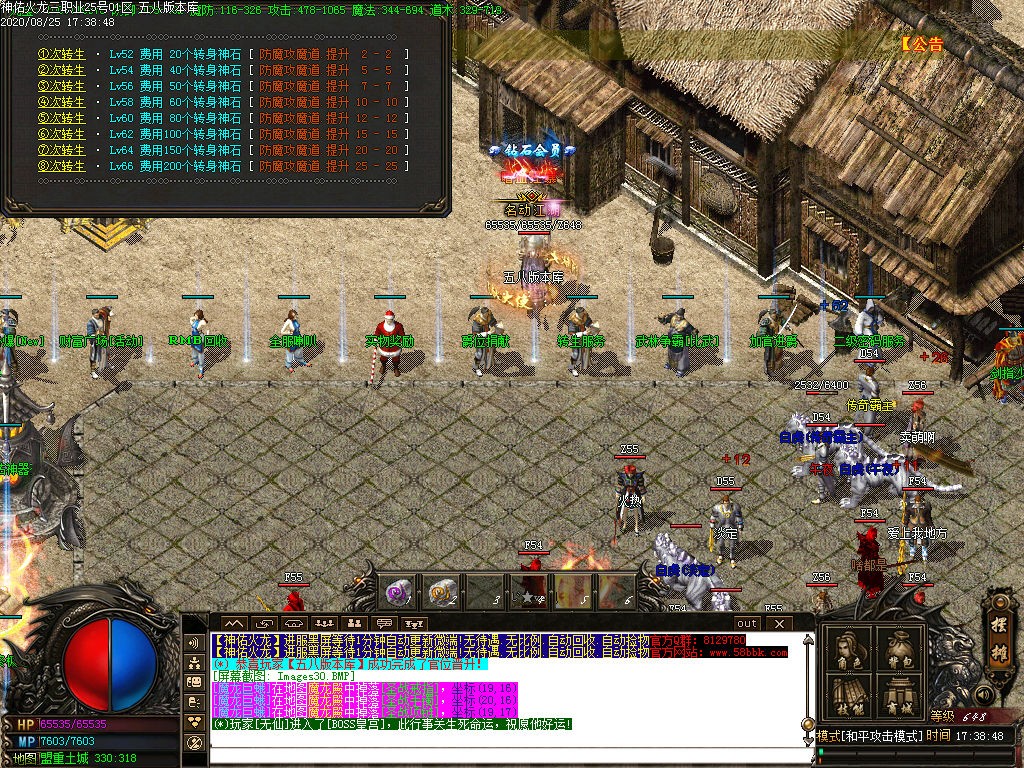 【公告】:为提高人物属性方便玩家打宝,特设置各种NPC,龙的传人,转生服务,爵位捐献,天下第一,武林盟主等。