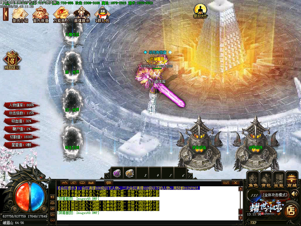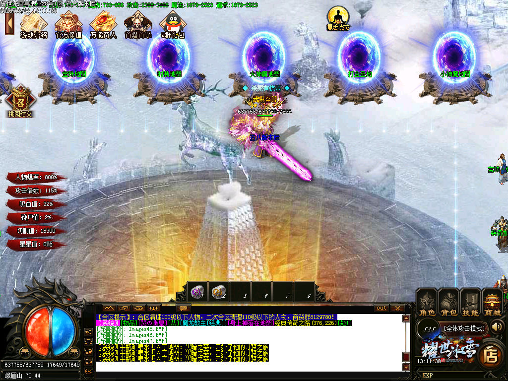 【开区时间】:全新独家攻速耀世冰雪版本来袭,独家创新 玩法新颖 诚邀兄弟来战!!!