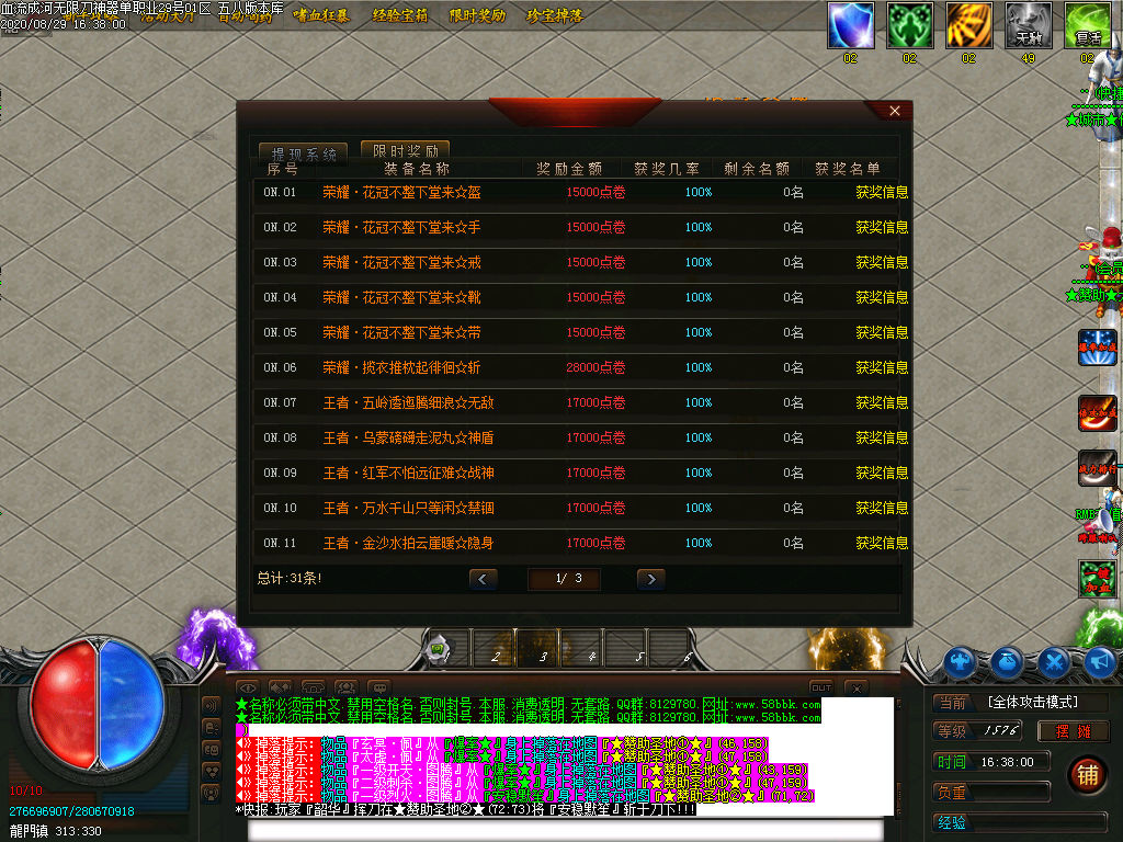 本服所有地图全都刷新终极BOSS.所有全爆