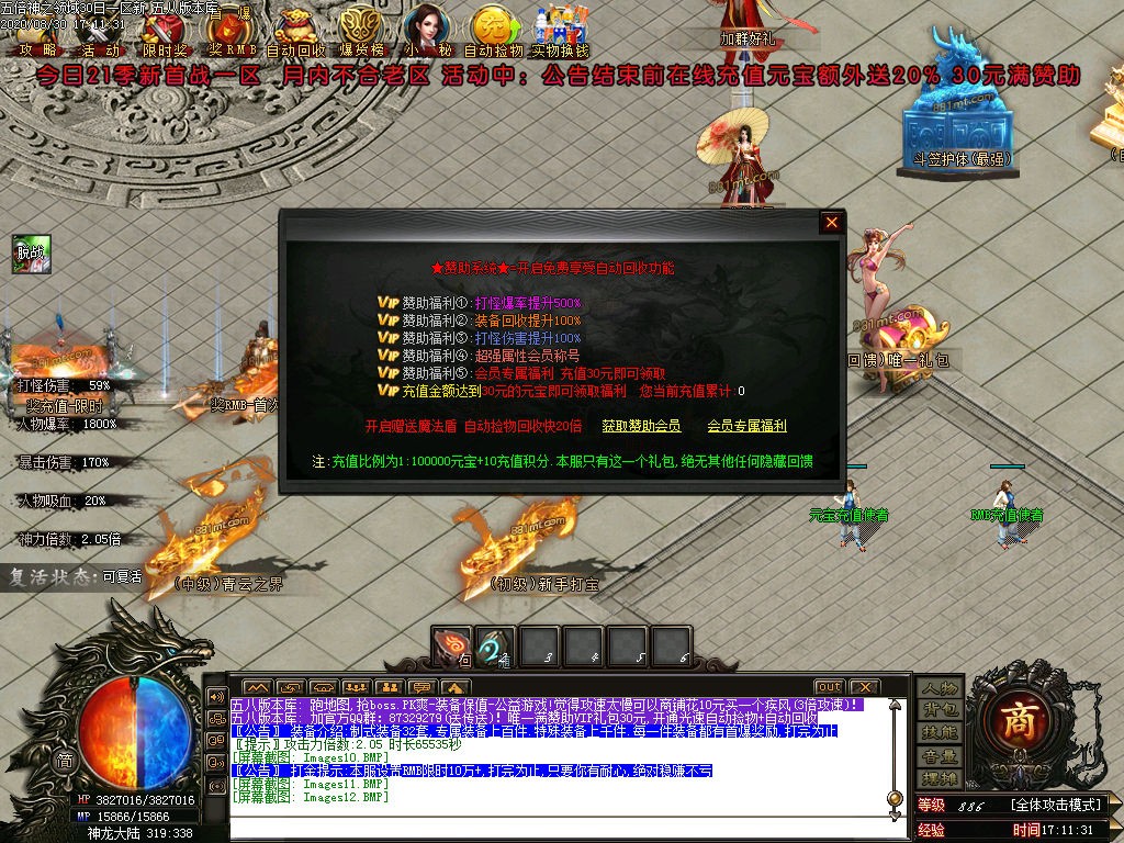 增加散人免费玩福利,低级专属装备可以兑换充直积分