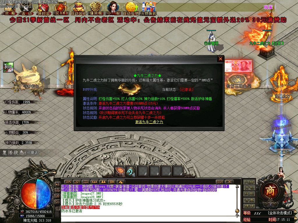 地图增加白怪1.5-2.5倍刷新,鬼王15个地图刷