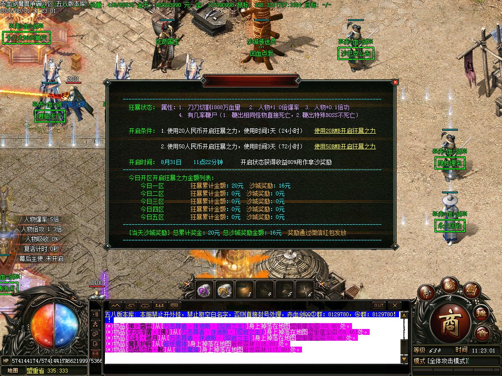 3.拿沙奖励捐献的%80.越合奖励越高。每次合区都有米(保守区区1000-10000)。