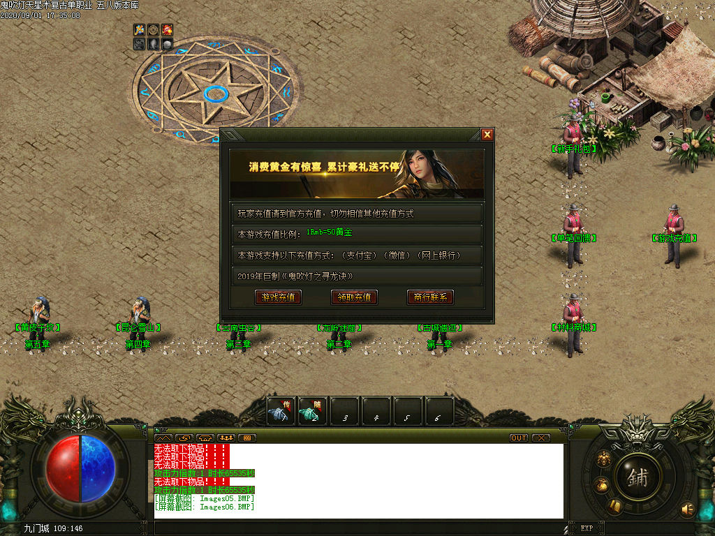 【充值比例】:黄金 1:100 充值点 1:1 !