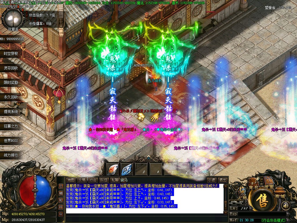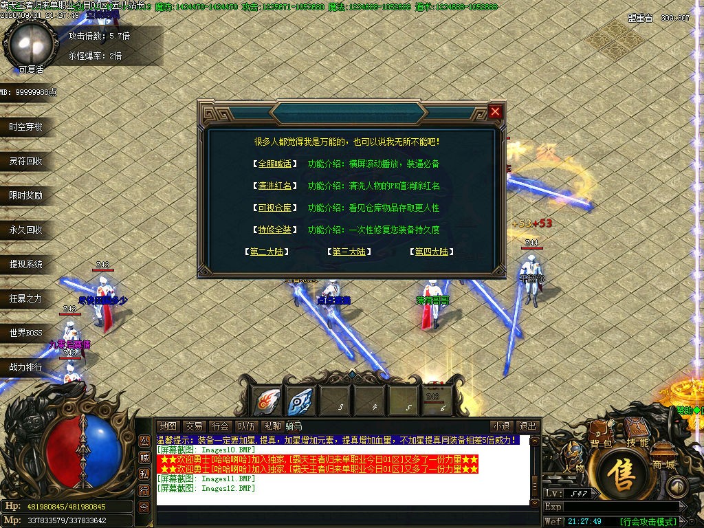3. 每天多个新区,区区活人超多,每天有上千新人加入霸天王者归来.【最流畅的游戏环境】
