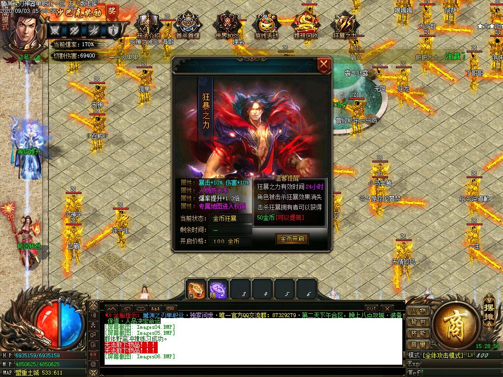 10、土豪玩家上线优先洗练一套传说品质装备, 二大陆可进行洗练服务