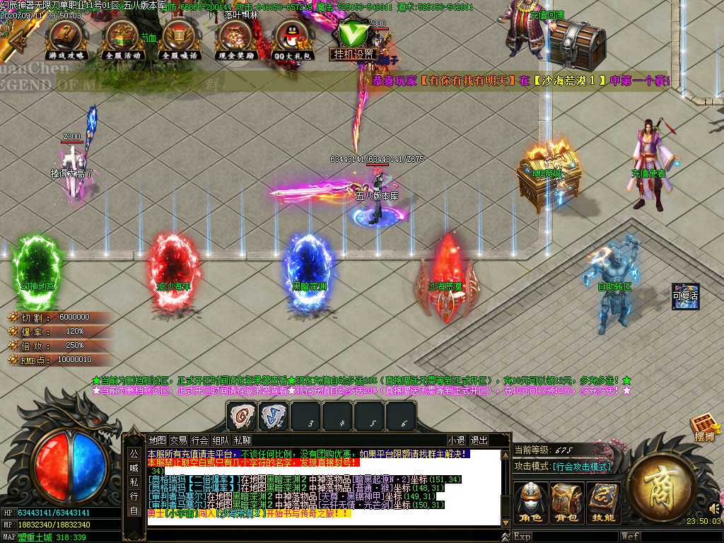 游戏介绍5:本服一共三个大陆只要够等级和转生都可以免费进入绝无任何隐藏消费