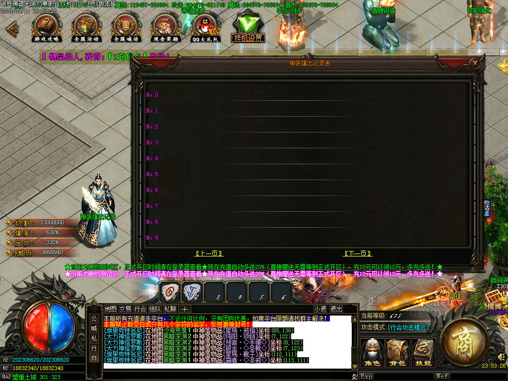 游戏介绍3:本服所有装备都奖励充值上千限时永久有效