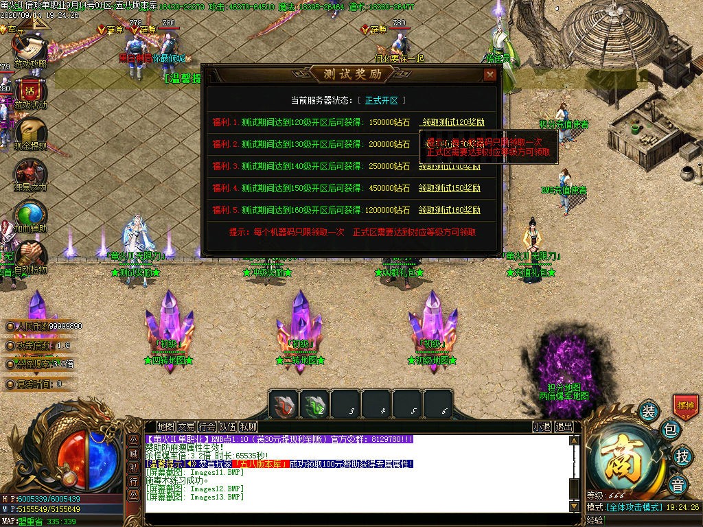 首爆:本服上百个物品怪物都有首杀首爆 给予大量钻石奖励,人人都有机会,个人运气问题,前期起步很大帮助