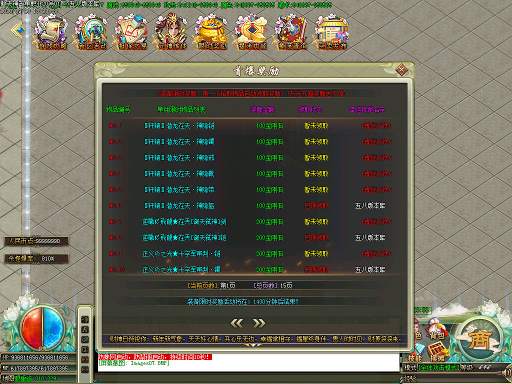 【傲天神器】【全网最火狂爆神器】22米全满,20米捐献,2米狂暴,无隐藏,所有沙城捐献全部累积沙城奖励,自动捡物,自动回收