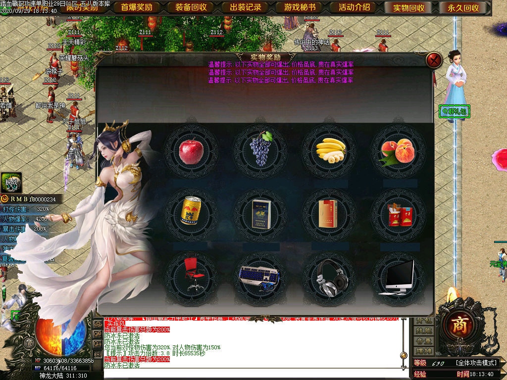 游戏特色:千件限时,百件回收,稳定长久,持久,无限实物,无限扛米!