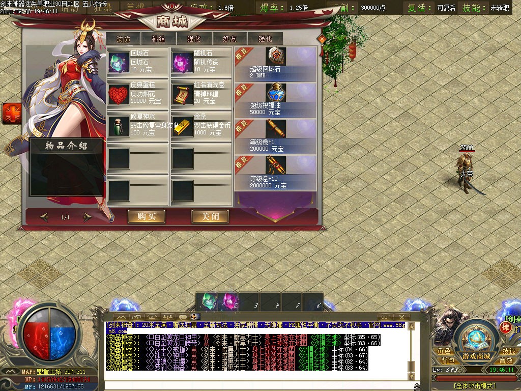 6.进入二大陆之后,高级等级石升至800级(满级),转生丹可升至10转(满转)