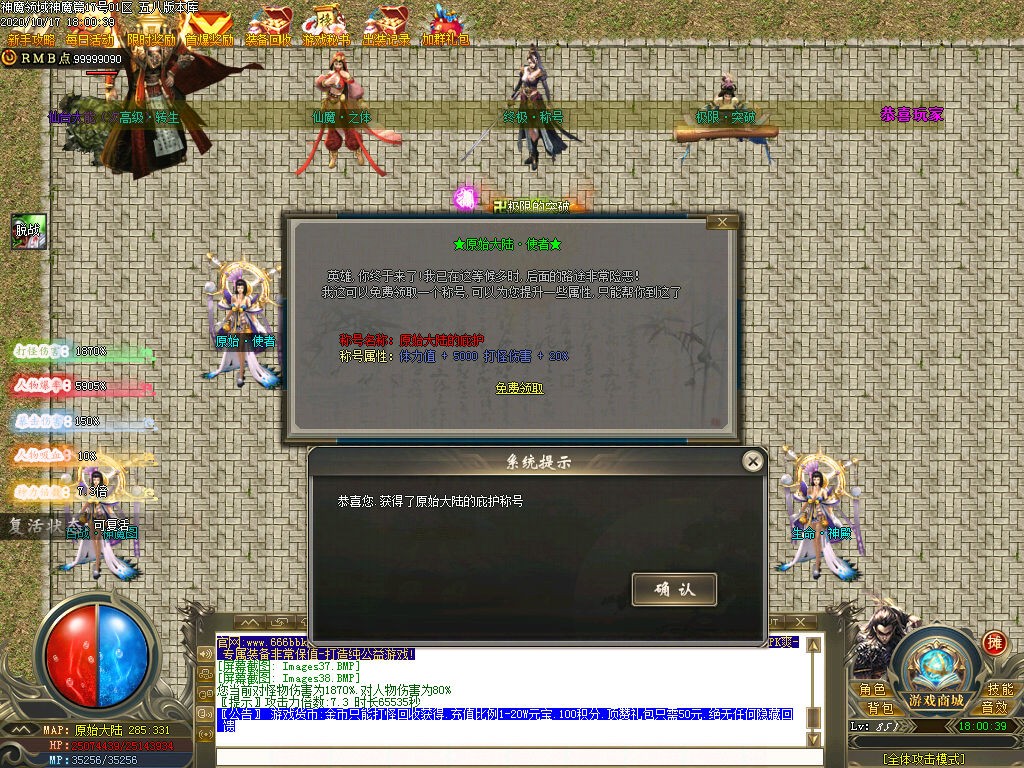 ║【原始大陆】:土城右边NPC进入,里面超多专属地图!大神魔升级,满称号NPC。高级转身! ║