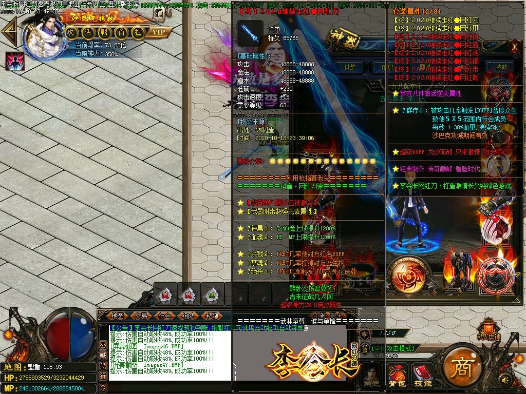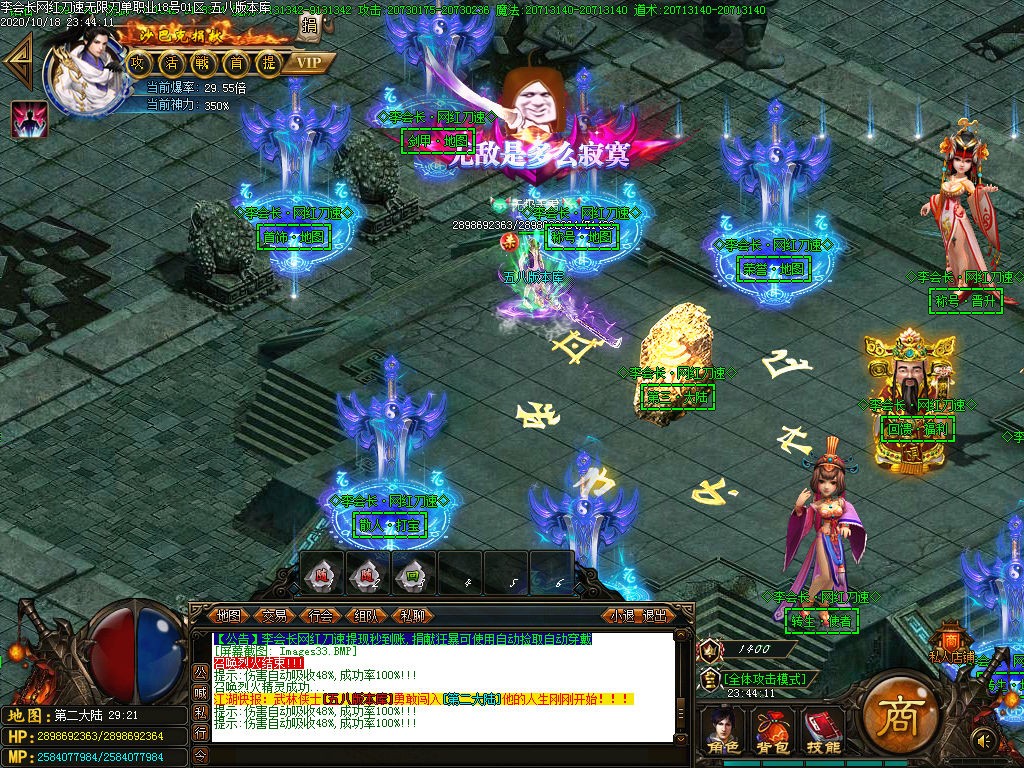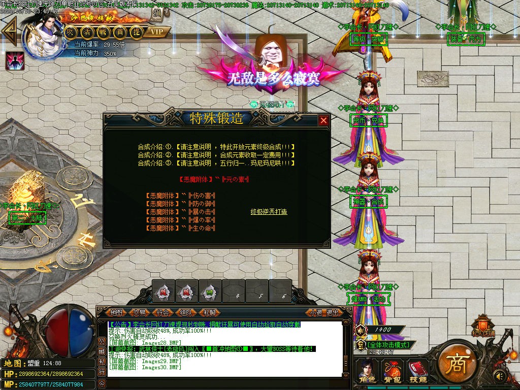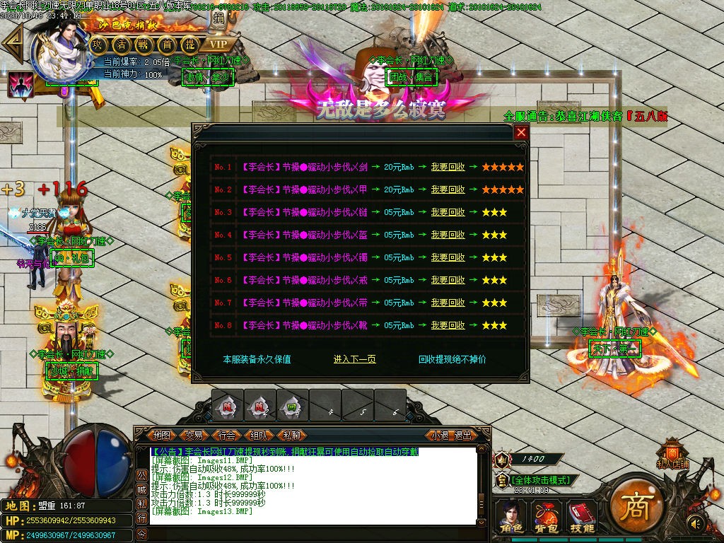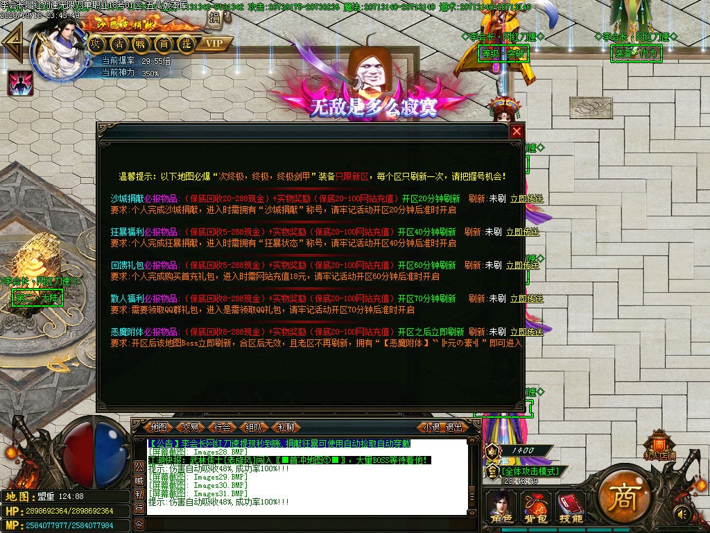 激活终极地图,终极地图每小时刷新一只终极BOOS,爆终极1-2件+米+网站充值 记得看系统提示去抢