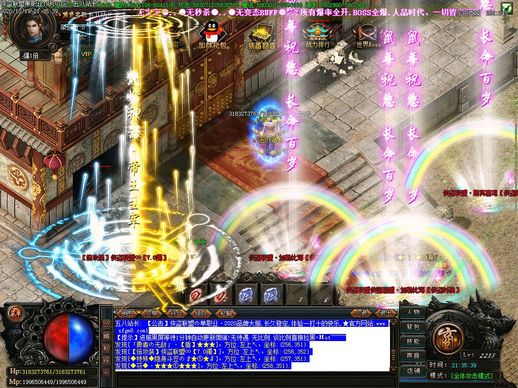 装备区分:装备区分:本服装备层次,绿色-黄色-粉色-蓝色-白色,终极装备爆出,华丽光柱闪爆地图.