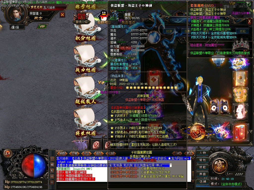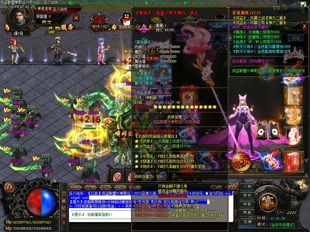 装备介绍:本服共50套装备、新增51-52套剑甲.另加6套倍攻首饰、时装6套、生肖3套、每样特殊各15套、特殊0级是终极、爆率全开、新手怪都爆终极。
