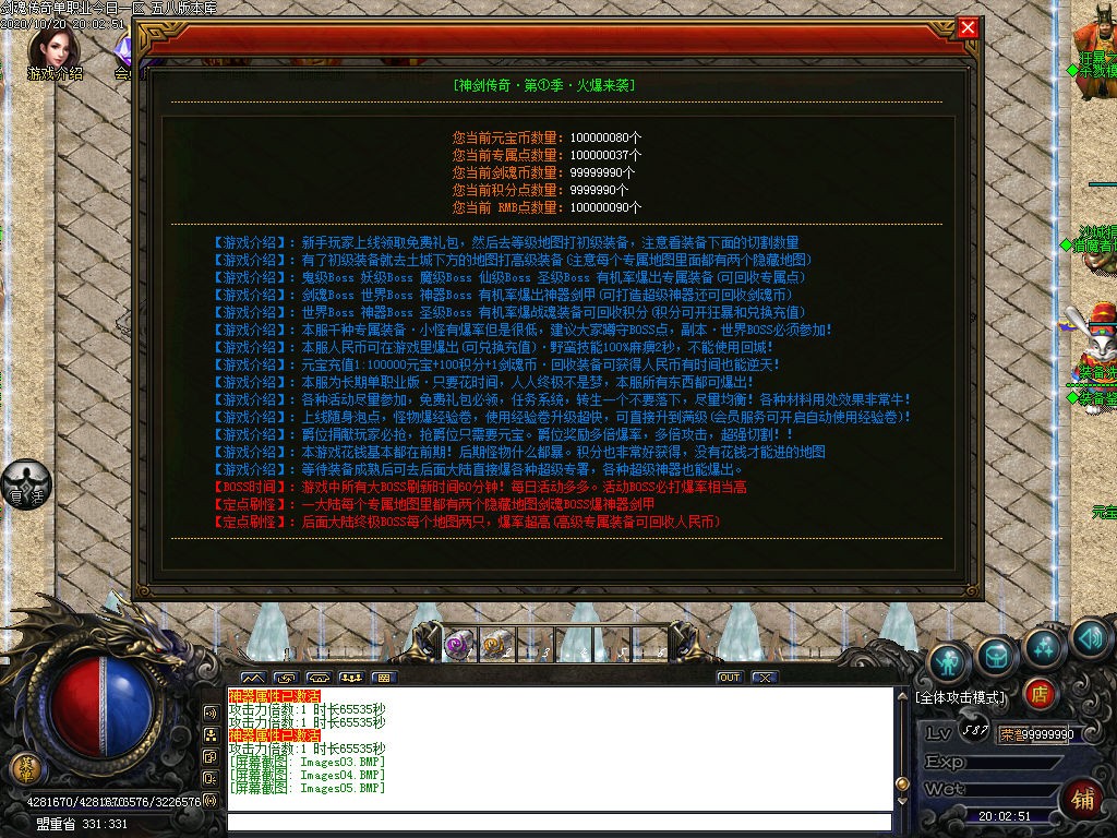 【元宝比例】:网银1:100000元宝 + 100积分 + 1剑魂币 [散人耐玩版本,长期稳定开放]