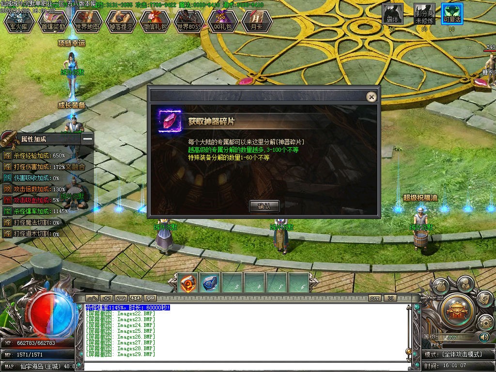 仙宇世界极其庞大,除了经典的传奇玛法大陆之外还有多个超级大陆,每个大陆都拥有多个特殊地图。在世界中你可以通过打怪获得不同的马匹,助你驰骋域外大陆。如果你想进入新的大陆,必须通过挑战。只要有强者通过了挑战,所有的勇者都能一起进入新世界 。每个大陆都有专属于本世界的特殊装备,要么特性强大,要么属性强大,还等什么,快与我一-起驰骋世界