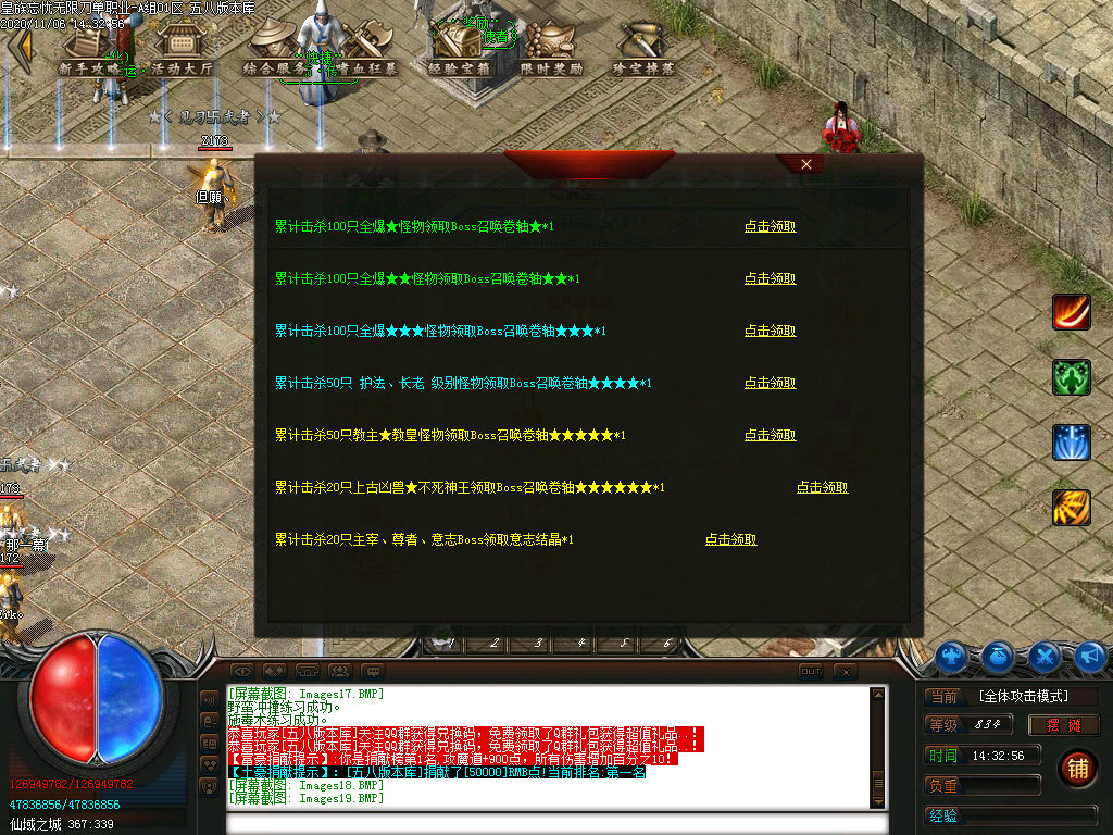 ★★★【50米玩法(7000米点、70充值点):先捐献 然后合成盾牌 升满称号 兑换经验宝箱升级至450级