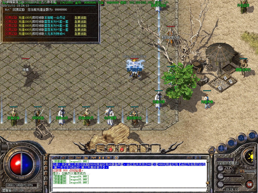 ⑥.【攻沙奖励】:新区 +7装备两套加10000元宝,老区+6装备两套5000元宝