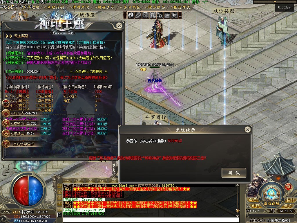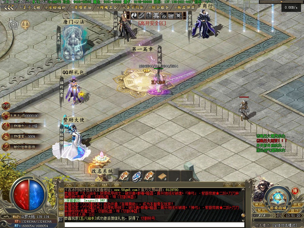 上线会员+捐献+狂暴+满神弓(攻速)等于 充值250魂币+49大米 即可!
