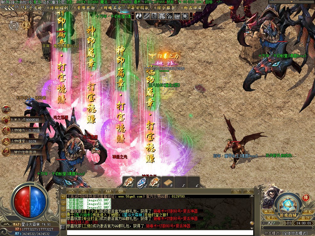 升级神印可提升很多攻击型的米素属性,附带传送功能,可输入 @传送 坐标 就可传送过去或者,打开大地图点击右键直接传送!