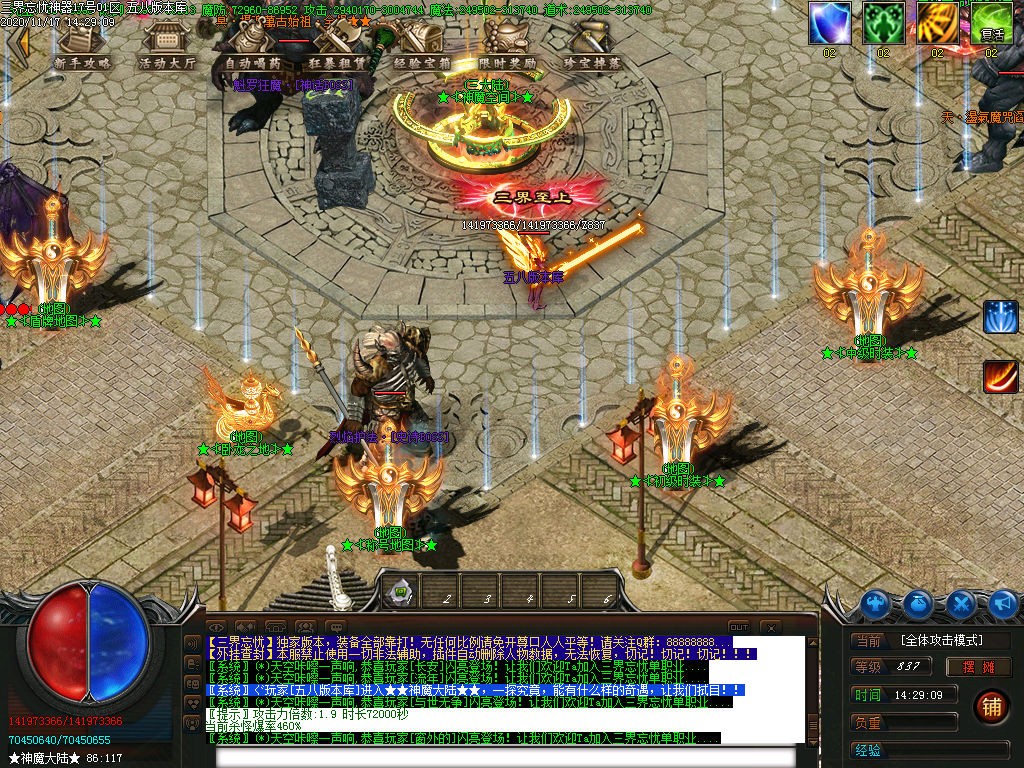 【游戏特色】 单区数万限时奖励,上百件装备回收,光柱亮瞎你的眼