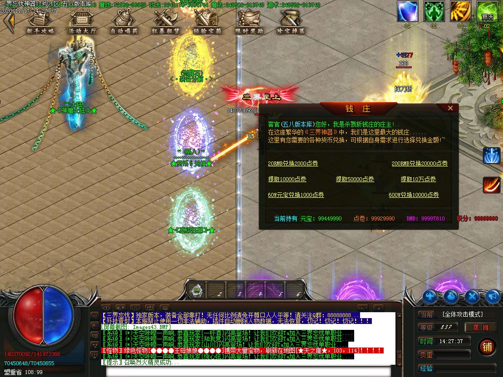 【充值比例】 点券充值1:2000 米点充值1:20 所有充值请走平台
