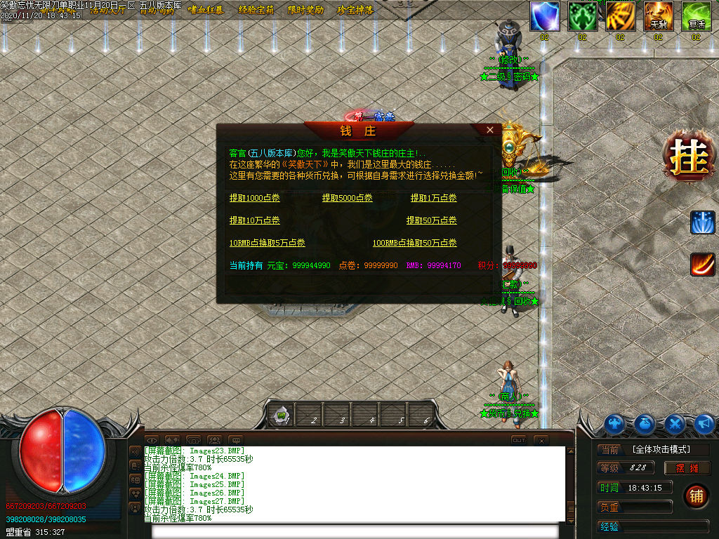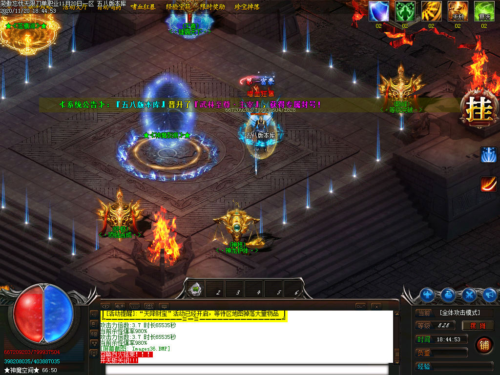 3:本服所有地图全都刷新终极BOSS.所有全爆.保底回收大米.具体土城左边查看.光柱一定不要放过