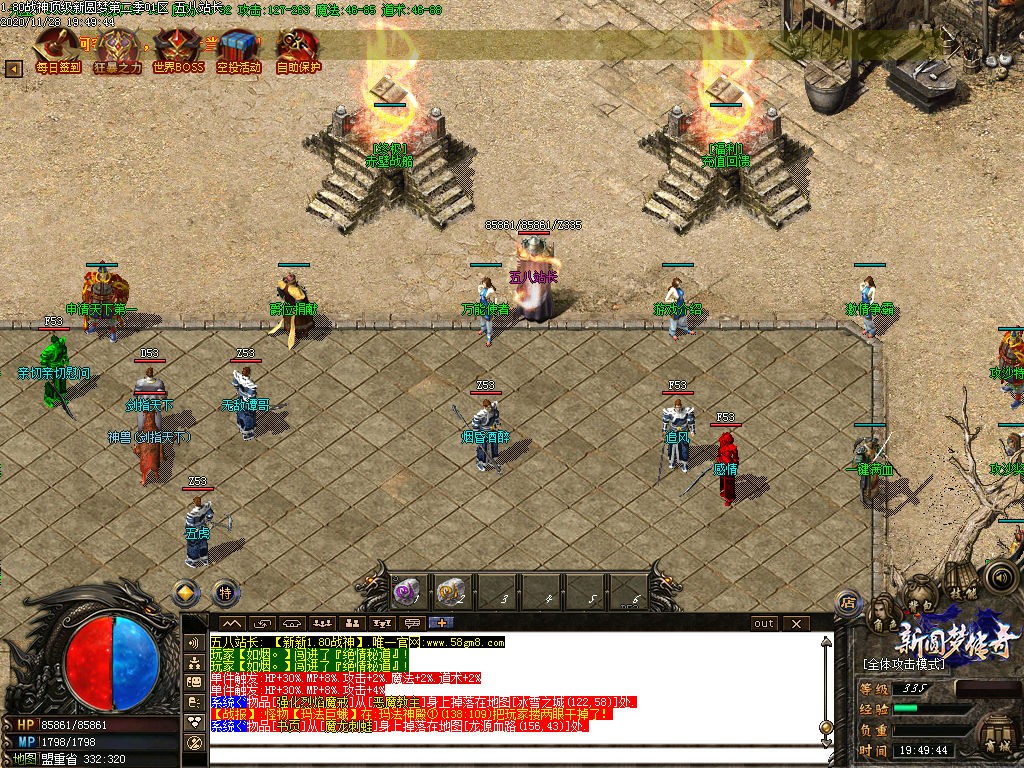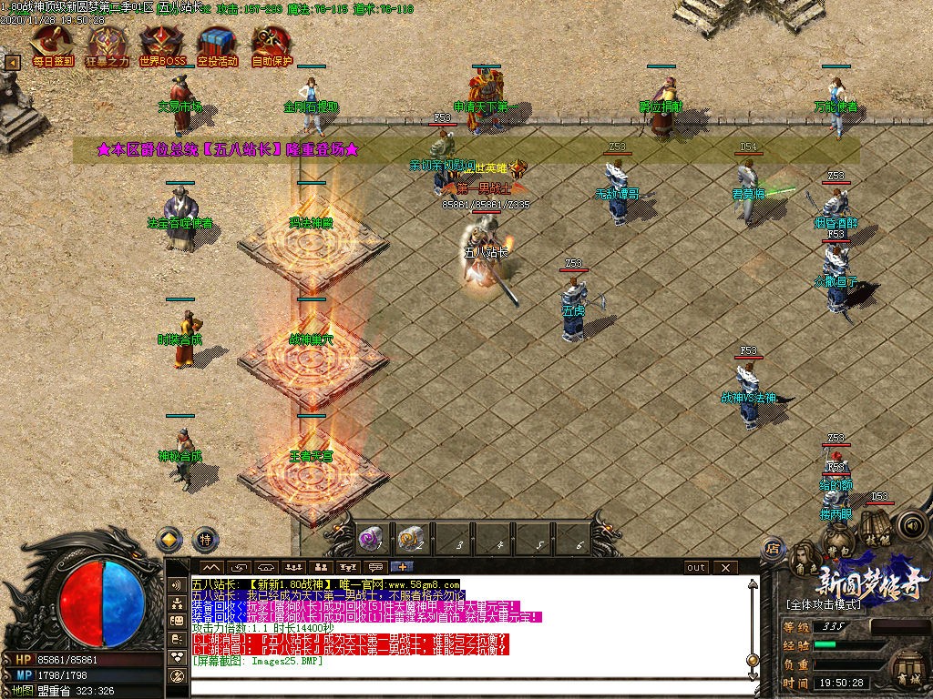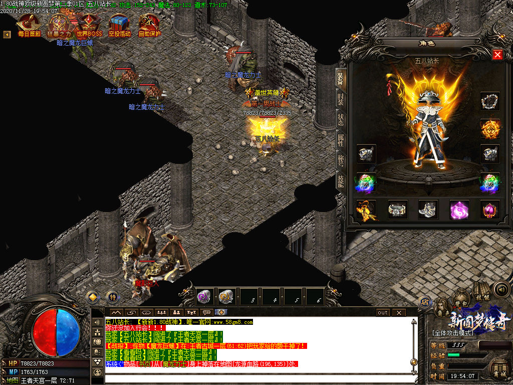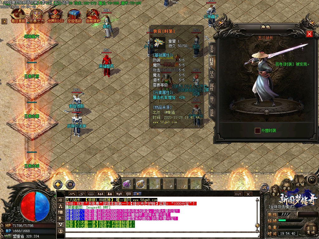 【公告】:为提高人物属性方便玩家打宝,特设置各种NPC,神迹之力,转生服务,爵位捐献,天下第一,武林盟主等。