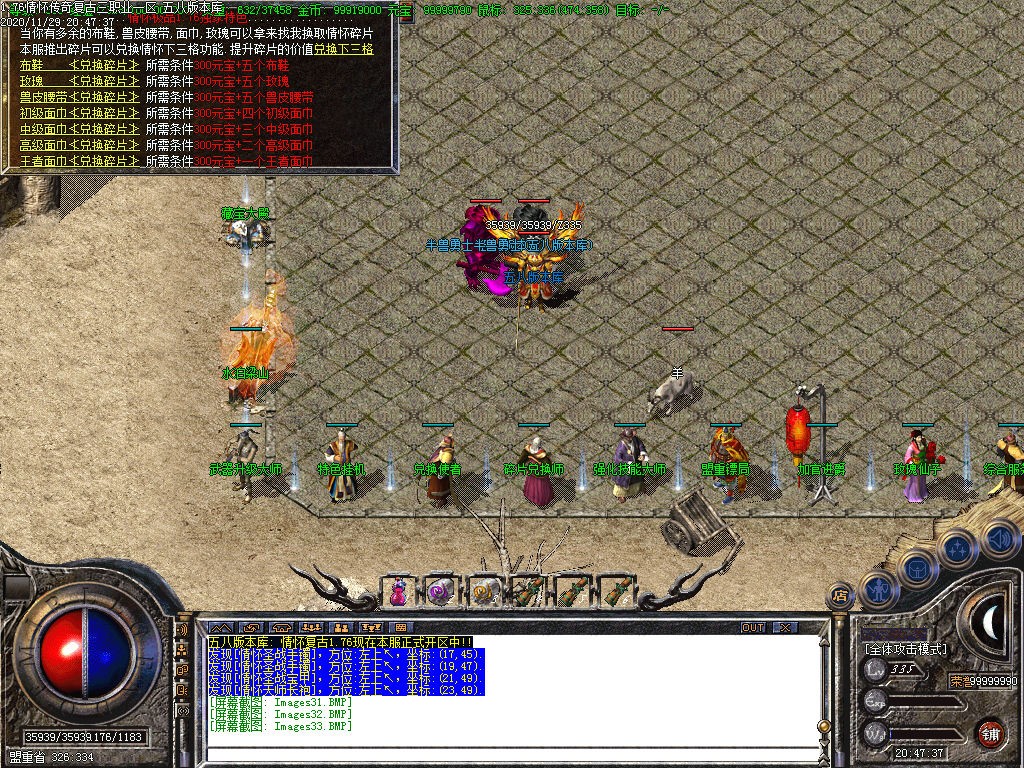 装备级别为:沃玛→祖玛→圣战→情怀圣站!赤月加一套装备!