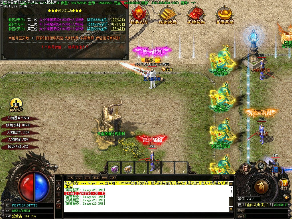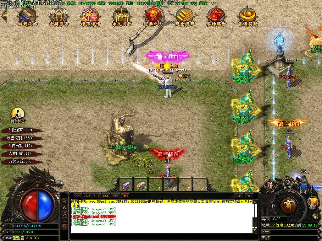 [沙城奖励] 每日新区攻沙奖池累计制,上不封顶, 保证合区后百人大战,丰厚奖励