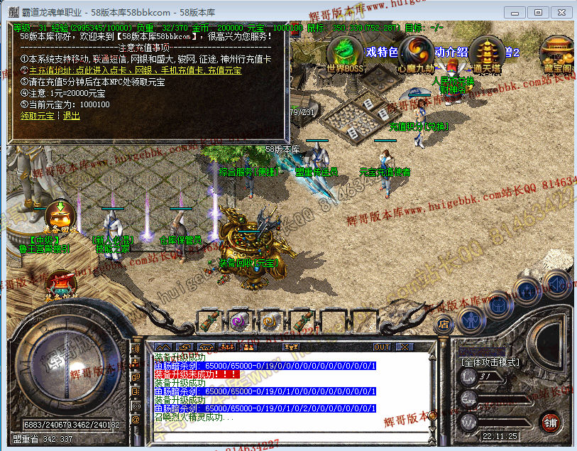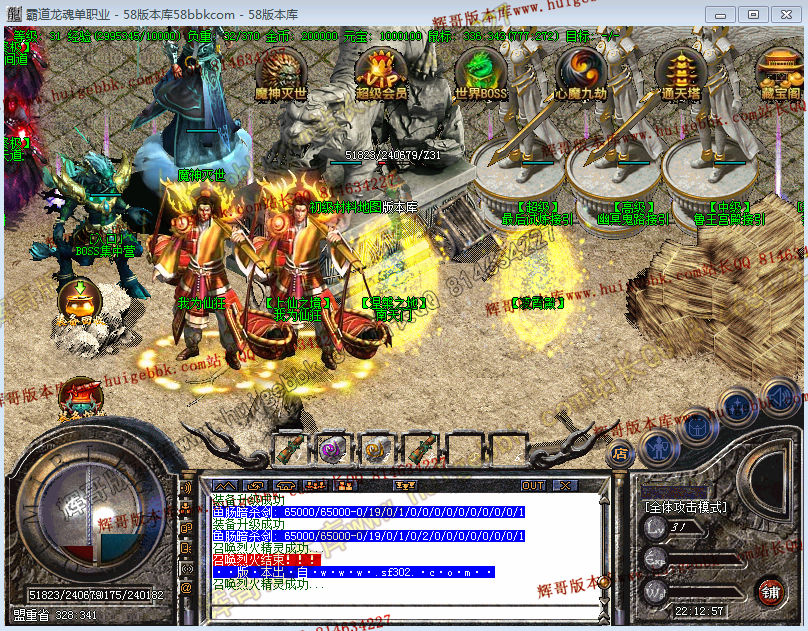 【大幅度提高游戏爆率,让散人更容易上手,采用最新封挂系统,真正做到封挂】【技能:全部技能由新手尸王爆出:基本剑术、攻杀剑术、刺杀剑术、半月剑法、野蛮冲撞、烈火剑法、魔法盾、冰咆哮、施毒术、群体施毒术、群体雷电术、开天斩、逐日剑法、护体神盾,其他技能取消。】【增加超级会员,共10级,每一级增加血量!需要轮回币(游戏中轮回币从畜生道开始就可以爆出 ,也可购买)一级1亿血量,1%真实爆率、二级2亿血量,2%真实爆率、。。。。十级10亿血量,15%真实爆率。】【增加两个新地图,要求达到相应转生才能进入!】【增加两套靴子腰带、霸道龙魂七八九阶,两把新武器,一个新头盔,新地图爆出!】【增加霸道龙魂,麒麟臂加血属性,一阶500W血量,二阶1000W血量。。。。九阶4500W血量!血量与靴子腰带百分比相乘!】【初级BOSS(1-4转):防御、攻击降为0!转生残卷1/2/3/4爆率非常高!强化技能石爆率非常高!新手不能错过的BOSS!】【六道转生:所有怪物攻击降低,数量增加!转生证明爆率提高!让玩家轻松10转!同时更改每道轮回只爆相应的转生!】【增加沙巴克地图拿下沙巴克的成员才能进入这个地图里面刷新世界BOSS一只,富贵兽一只,返璞归真一只,南天门怪 20只,凌霄殿 20只,该地图刷新时间是4小时刷新一回!】一,玩家进游戏,先去新手之家把技能打齐(烈火、魔法盾、冰咆哮等)。然后按照地图依次走(爆1-4转转生残卷,然后合成1-4转证明)混完最后试炼那么就算新手毕业了,去挑战六道轮回吧,地图出高级装备,爆轮回材料!不要小看这六转,这六转是加攻击倍数的!二,当人物转生到天道的时候,可以去南天门了,这里爆仙魂(转生物品)技能书、技能石(技能石可以强化技能,最高9级)、高级武器衣服首饰等等!等人物到打13转,可以去凌霄殿打高级武器和新衣服,转生物品等等!三,为了增加游戏乐趣增加了元宝pk和夺宝地图!里面可以爆奶子、技能书、技能石和高级物品,是玩家必争之地!四,本服技能非常厉害,特别是强化到9级之后,因此PK时候非常考验技巧!同时还增加魔灯地图(终极地图),只要点亮3盏魔灯就可以进入顶级地图里面怪物非常厉害,大家小心尝试(建议大家前期不要尝试,具体游戏体验)!此外还有boss集中营和通天神塔福利地图,具体大家可以游戏体验!。五,如果大家打到多的装备怎么办?为了方便大家买卖物品,大家可以把物品放入店铺买卖!具体步骤:游戏界面有个 “店” 字,进入后点“我的店铺”然后建立自己店铺的名字,就可以把想卖的物品放入进去,填好价格,大家就可以买了!六,更新了三重修仙,没每重修仙附加1倍神力。七,优化游戏技能,取消无敌,隐身FUFF战技。无敌,隐身BUFF修改为追云以上衣服触发,最长时间为5S。BOSS武器可触发禁锢,虐杀,红名BUFF中高级武器可触发狂暴BUFF,增加大量攻击属性。八,重新定义技能,开启开天斩,逐日剑法,彻地钉,群体雷电术,群体施毒术,分身术,护体神盾,倚天辟地。名字还是原来的名字。效果不是原来的效果,这个进游戏自己体会~九,修改腰带靴子套装触发加血属性。最高1700%。十,就改盾牌攻击触发回血。50W-4000W十一,增加血量奶瓶使用后增加血量上限。一共九阶 A-I ,每阶增加1E血量十二,增加南天门地图,里面刷新仙级怪物,可爆奶瓶和所有终极。威力强大。不够强大就再加强~十三,修改活动,富贵兽几率爆出终极奶瓶,必抢哦~十四,增加2种神秘药水,在积分兑换处换取。十五,修改龙魂和麒麟臂需要3件触发~十六。增加技能强化为九重~==============================================================