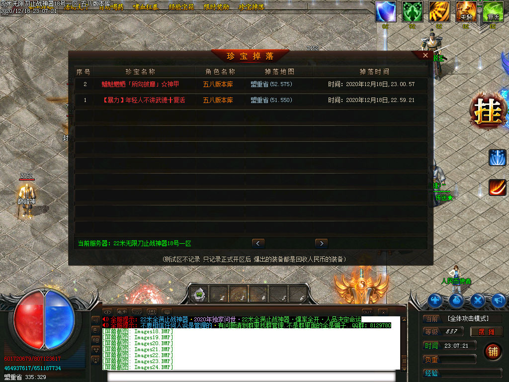 游戏介绍:22米全满.无敌挂机打米.满地图爆米点,装备回收米点.上线送鞭尸 自动挂机 自动穿戴 自动回收 上班族必备 。