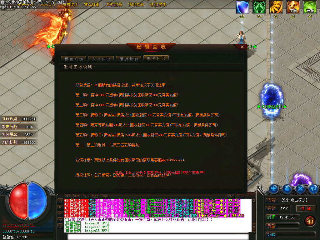 【游戏福利】:单区数万米福利奖励,上百件永久回收,光柱无线爆,见光就是米,你敢来,我敢送