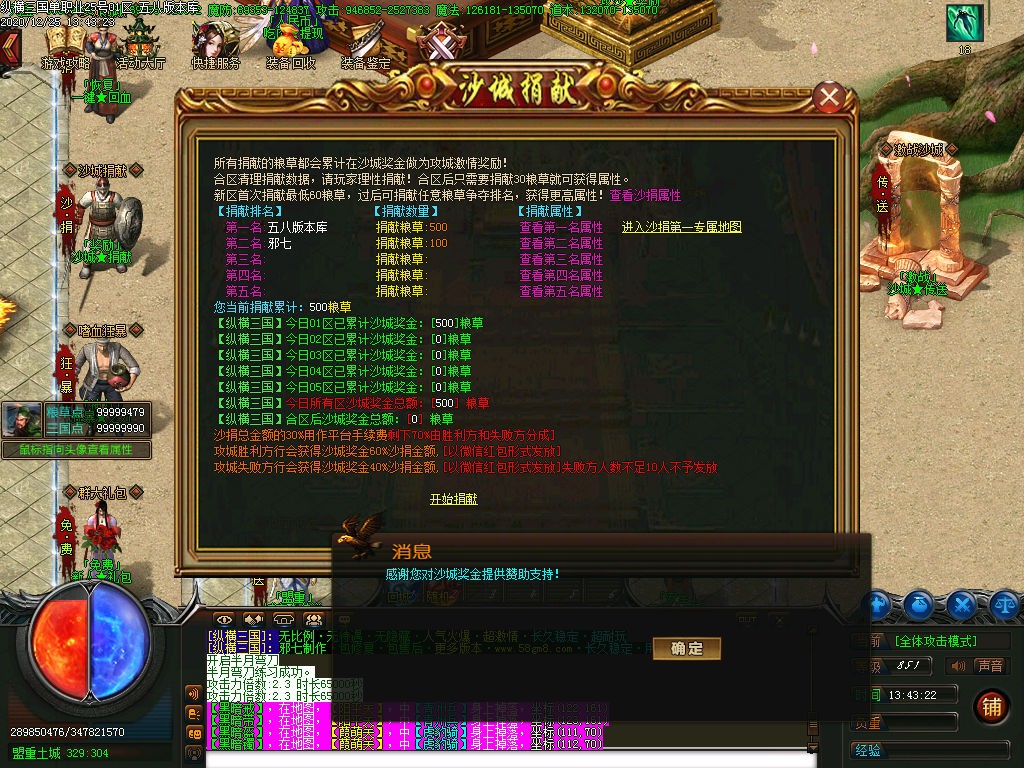 【充值比例】:网银1:2粮草,无任何比例,粮草1:2,散人可打