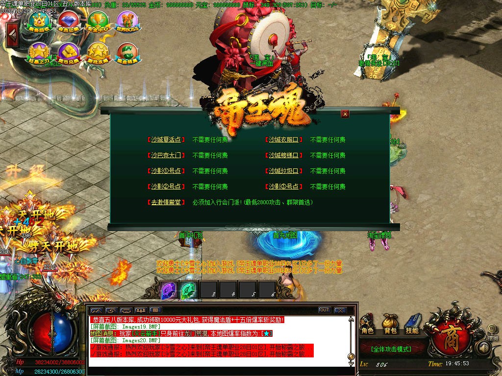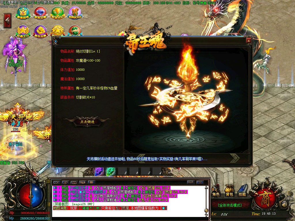 特此介绍 所有装备全能爆出 活动不要错过 大小神魔先天之体等 全部免费 攻沙拿红包 不给任何玩家待遇 GM不参与游戏